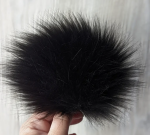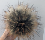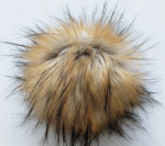 Hand sewn faux fur pom pom measuring 7/8" from pile tip to tip. Each pom has two strings and a button for easy attachment and detachment.